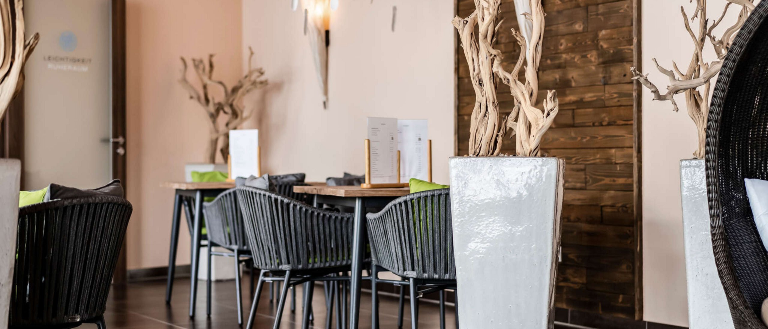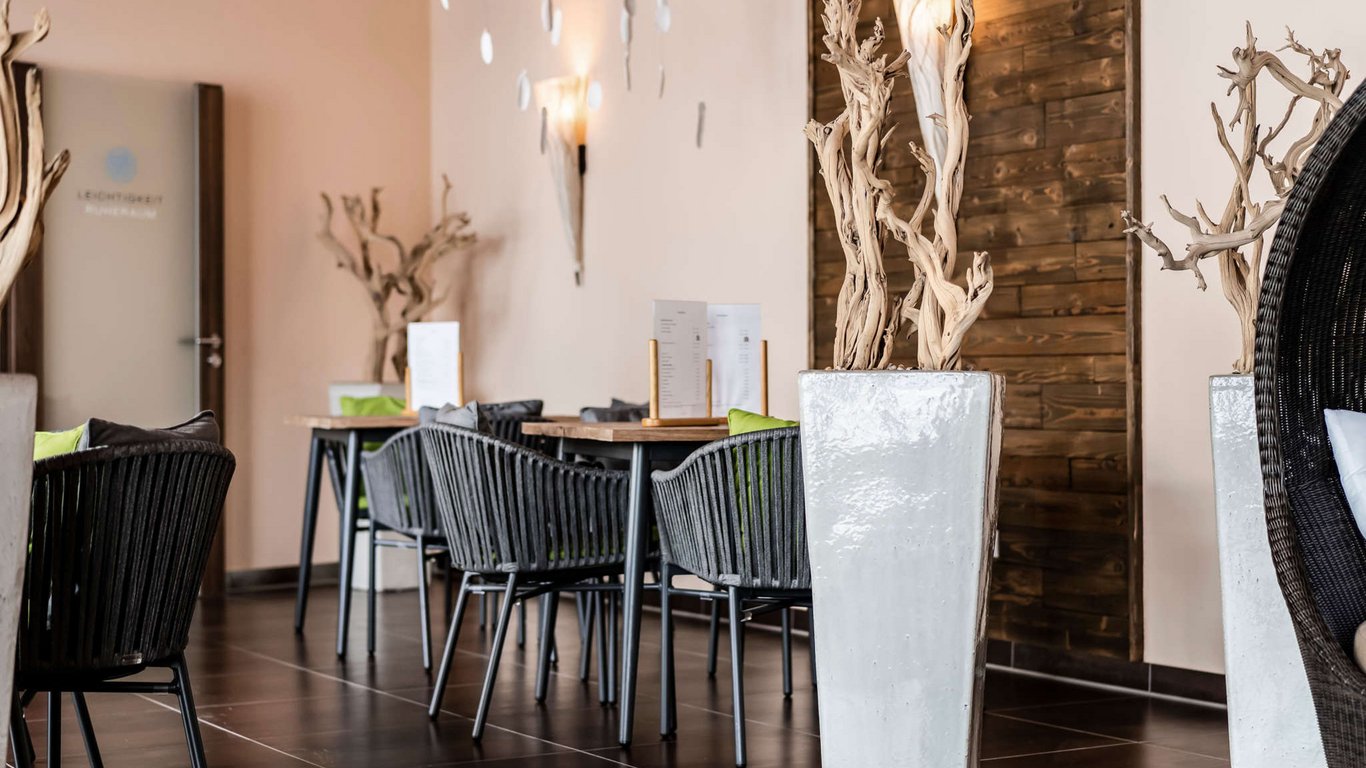 Das Bistro Wasserstrudel befindet sich im Alpin-SPA des Panoramahotels Oberjoch. Hier darf entspannt im Bademantel gespeist werden.